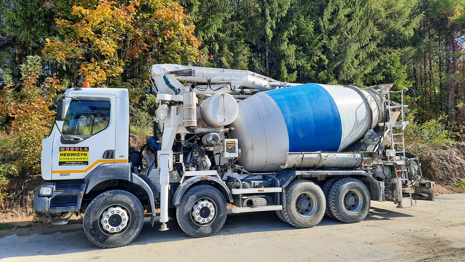 - Transport betonu betonomieszarkami o pojemnościach od 6 m³ do 9 m³